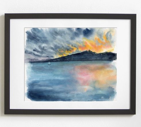 Couché de soleil sur la dent du Chat (illustration originale)